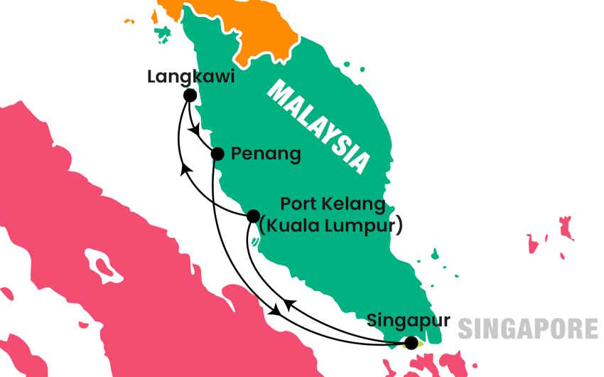 İstanbul – Singapur, Singapur, Port Kelang | Kuala Lumpur Şehir Turu & Batu Mağraları, Langkawi | Langkawi Ada Turu & Sky Bridge, Penang | Penang & Georgetown Turu, Denizde Seyir, Singapur| Sentosa Adası Turu, Singapur | Singapur Şehir Turu & Gardens By The Bay & Marine Bay Sand - İstanbul ziyareti